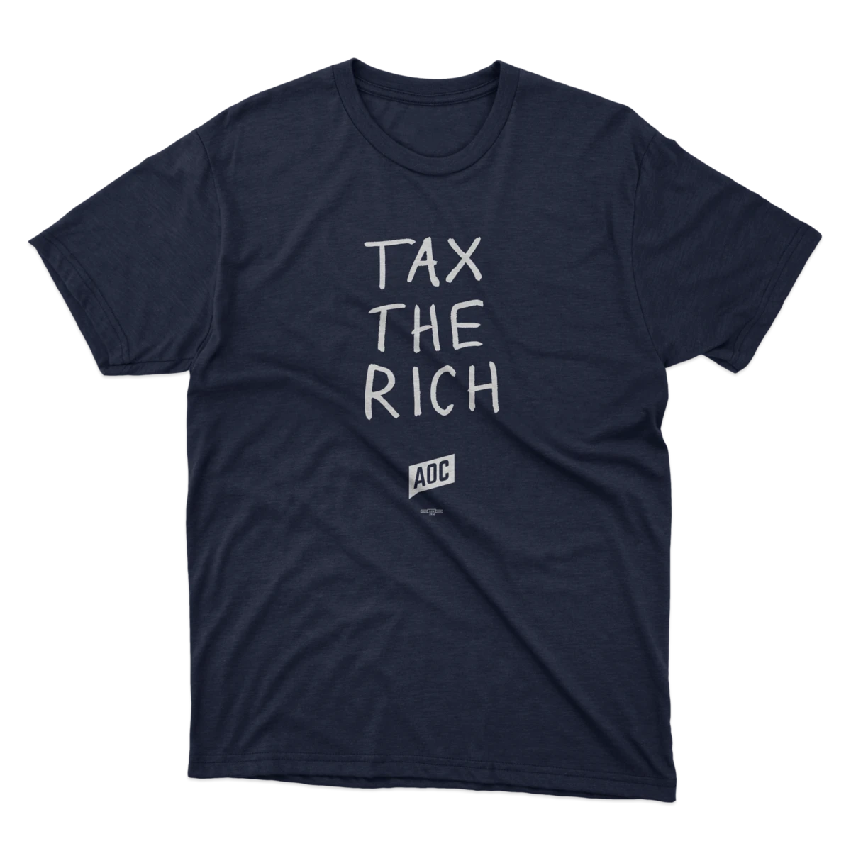 미국 민주당에서 가장 진보적인 진영에 속하는 알렉산드리아 오카시오 코르테즈(AOC)는 자신의 웹사이트에 지지자들이 각종 굿즈(merchandise)를 구매할 수 있는 온라인 매장을 갖추고 있다. 보수 언론에서는 "자본주의를 비판하는 정치인이 비싼 셔츠를 판다"고 비난하지만, 웹사이트에 따르면 이 매장에서 얻어지는 수익은 전액 기부금으로 활용된다. 그렇게 팔리는 제품 중 하나인 아래의 셔츠에는 "부자들에게서 세금을 거두자(Tax the rich)"는 문구가 적혀있고, 그 아래에는 기울여 그려진 말풍선 안에 'AOC'라는 글자가 적힌 작은 로고가 눈에 띈다.